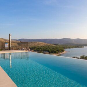 Do sprzedaży oferujemy luksusowo urządzoną willa w pobliżu Szybenika z basenem typu infinity, kortem tenisowym i panoramicznym widokiem na archipelag.