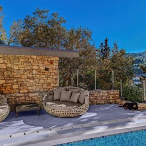Nieruchomość zbudowana jest z najwyższej jakości materiałów, z ogrzewaniem podłogowym, a luksusowe meble idealnie komponują się z wnętrzem. Z salonu wychodzi się na dziedziniec z basenem i ogrodem z roślinnością śródziemnomorską (oliwki, cytryny, limonki, pomarańcze…).