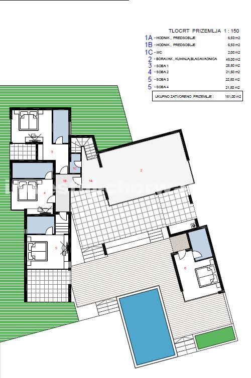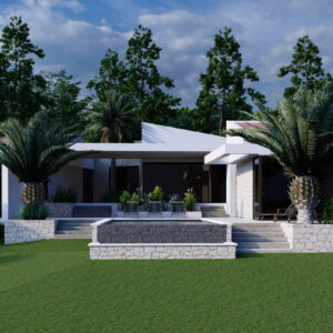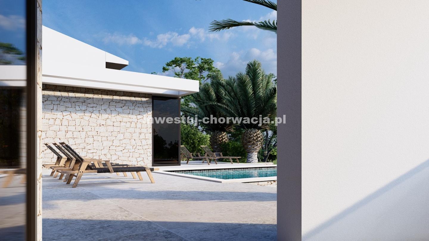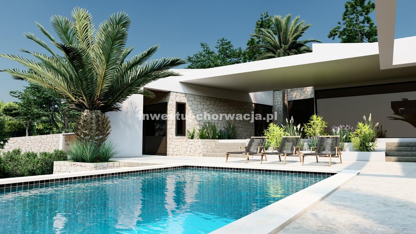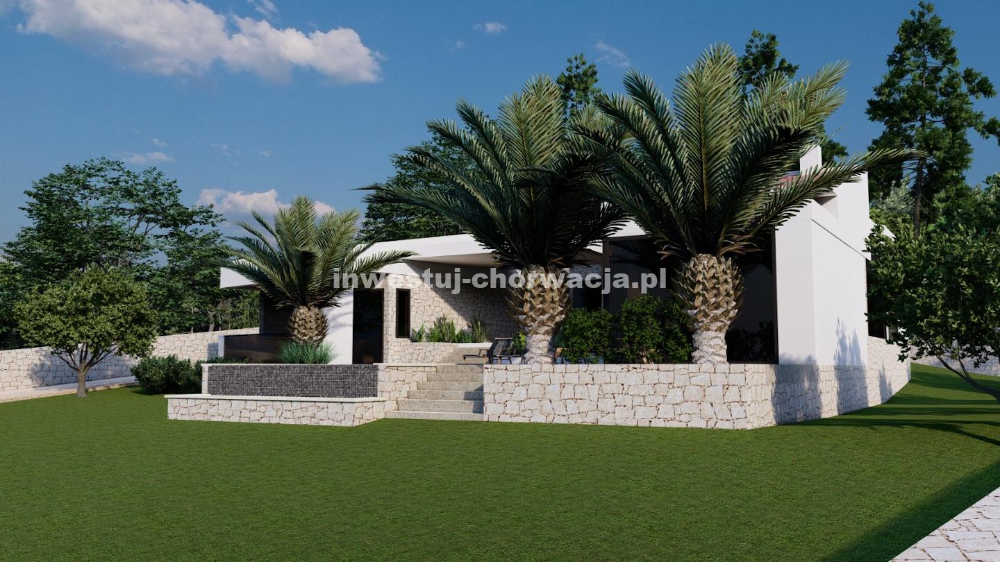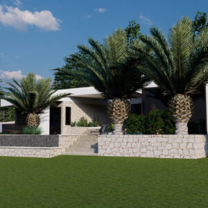 Do sprzedaży oferujemy wyjątkową działkę budowlaną o powierzchni 10.000 m2 wraz z projektem budowy nowoczesnej willi z basenem w Novalji, w pobliżu Camp Paradiso.