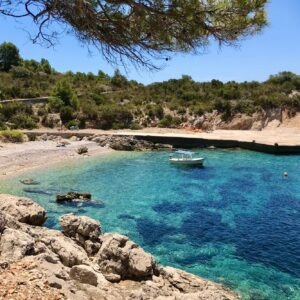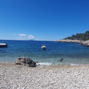Znajduje się na pięknych, cichych południowo-zachodnich zboczach zatoki na wyspie Vis, w pobliżu starego miasteczka rybackiego Komiza, z przepięknym widokiem na morze i wyspę Biševo.