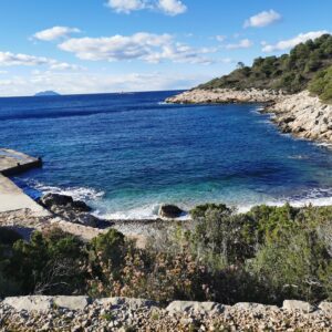 Znajduje się na pięknych, cichych południowo-zachodnich zboczach zatoki na wyspie Vis, w pobliżu starego miasteczka rybackiego Komiza, z przepięknym widokiem na morze i wyspę Biševo.